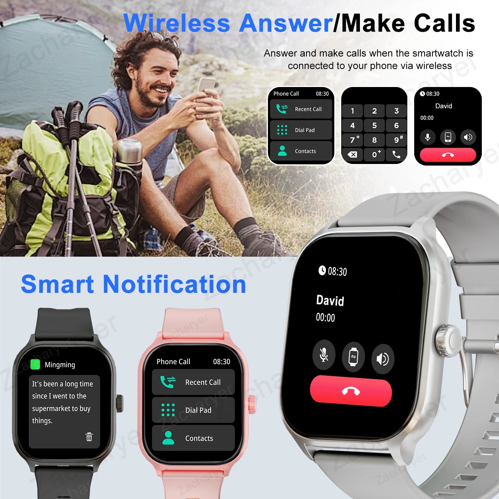 Function: Message Reminder,Call Reminder,Answer Call,Dial Call,Push Message,Alarm Clock